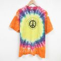 XL★古着 半袖 Tシャツ メンズ ピースマーク 大きいサイズ コットン クルーネック 黄 イエロー タイダイ 25jul04 中古