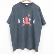 XL★古着 半袖 Tシャツ メンズ ARYA クルーネック 濃グレー 霜降り