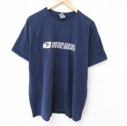 XL★古着 半袖 Tシャツ メンズ 郵便局 コットン クルーネック 紺