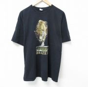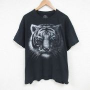 XL★古着 半袖 Tシャツ メンズ トラ 大きいサイズ コットン クルーネック 黒
