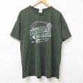 XL★古着 半袖 Tシャツ メンズ フットボール コットン クルーネック 濃緑 グリーン 25jul09 中古
