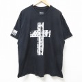 XL★古着 半袖 Tシャツ メンズ 十字架 大きいサイズ クルーネック 黒 ブラック 25jul09 中古
