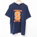 XL★古着 フルーツオブザルーム 半袖 Tシャツ メンズ シラキュース 大きいサイズ コットン クルーネック 紺 ネイビー 25jul12 中古