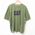 XL★古着 半袖 Tシャツ メンズ CAT 大きいサイズ コットン クルーネック 濃緑 グリーン 25jul12 中古