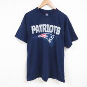 XL★古着 半袖 Tシャツ メンズ NFL ニューイングランドペイトリオッツ 大きいサイズ コットン クルーネック 紺 アメフト スーパーボウル