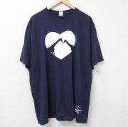 XL★古着 半袖 Tシャツ メンズ スキー 大きいサイズ コットン クルーネック 薄紺