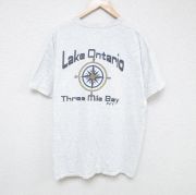 XL★古着 半袖 Tシャツ メンズ Lake 大きいサイズ クルーネック 薄グレー 霜降り