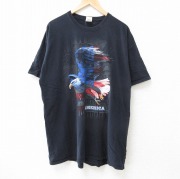 XL★古着 半袖 Tシャツ メンズ 星条旗 大きいサイズ コットン クルーネック 黒