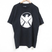 XL★古着 半袖 Tシャツ メンズ マーベル シールド コットン クルーネック 黒