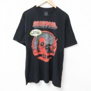 XL★古着 半袖 Tシャツ メンズ マーベル デッドプール 大きいサイズ コットン クルーネック 黒