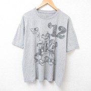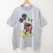 XL★古着 半袖 Tシャツ メンズ ディズニー ミッキー クルーネック グレー 霜降り