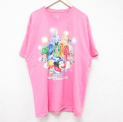 XL★古着 ヘインズ 半袖 Tシャツ メンズ ディズニー ミッキー 大きいサイズ コットン クルーネック ピンク