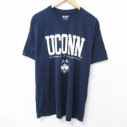 XL★古着 半袖 Tシャツ メンズ UCONN クルーネック 紺