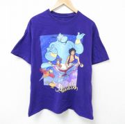 XL★古着 半袖 Tシャツ メンズ ディズニー アラジン コットン クルーネック 紫