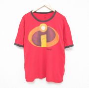 XL★古着 半袖 Tシャツ メンズ 映画 ディズニー ミスターインクレディブル 大きいサイズ コットン クルーネック 赤 リンガー