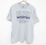 XL★古着 半袖 Tシャツ メンズ ディズニー ピクサー トイストーリー バズ 大きいサイズ クルーネック グレー 霜降り
