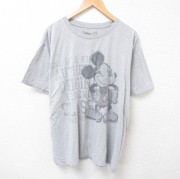 XL★古着 半袖 Tシャツ メンズ ディズニー ミッキー 大きいサイズ クルーネック グレー 霜降り