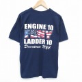XL★古着 半袖 Tシャツ メンズ 消防署 コットン クルーネック 紺 ネイビー 25jul22 中古