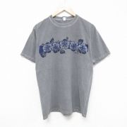 L★古着 Crazy Shirts 半袖 Tシャツ メンズ ハイビスカス コットン クルーネック グレー