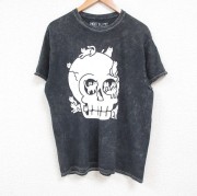 L★古着 半袖 Tシャツ メンズ スカル コットン クルーネック 黒