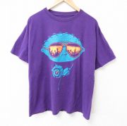 XL★古着 半袖 Tシャツ メンズ LSU 大きいサイズ コットン クルーネック 紫