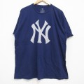 XL★古着 半袖 Tシャツ メンズ MLB ニューヨークヤンキース 大きいサイズ コットン クルーネック 薄紺 メジャーリーグ ベースボール 野球