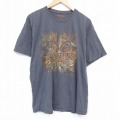 XL★古着 半袖 Tシャツ メンズ 鳥 コットン クルーネック 濃グレー
