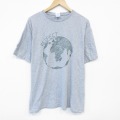 XL★古着 半袖 Tシャツ メンズ 地球 大きいサイズ クルーネック グレー 霜降り 25jul29 中古