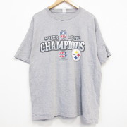 XL★古着 半袖 Tシャツ メンズ NFL ピッツバーグスティーラーズ クルーネック グレー 霜降り アメフト スーパーボウル
