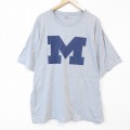 XL★古着 半袖 Tシャツ メンズ ミシガン 大きいサイズ クルーネック グレー 霜降り