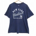 XL★古着 半袖 Tシャツ メンズ MLB ニューヨークヤンキース 大きいサイズ コットン クルーネック 薄紺 メジャーリーグ ベースボール 野球