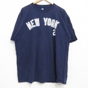 XL★古着 半袖 Tシャツ メンズ MLB ニューヨークヤンキース デレクジータ 2 コットン クルーネック 紺 メジャーリーグ ベースボール 野球