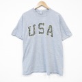 XL★古着 半袖 Tシャツ メンズ USA ロゴ クルーネック グレー 霜降り 25aug13 中古