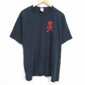 XL★古着 半袖 Tシャツ メンズ スカル 大きいサイズ コットン クルーネック 薄紺