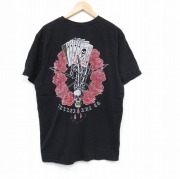 XL★古着 半袖 Tシャツ メンズ スカル トランプ 大きいサイズ クルーネック 黒