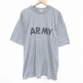 XL★古着 半袖 Tシャツ メンズ ミリタリー アーミー ARMY リフレクター 大きいサイズ ロング丈 クルーネック グレー 霜降り 25aug19 中古