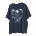 XL★古着 半袖 Tシャツ メンズ スケルトン 大きいサイズ クルーネック 黒 ブラック 25aug22 中古