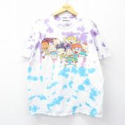 XL★古着 半袖 Tシャツ メンズ アニメ ニコロデオン コットン クルーネック 白他 タイダイ