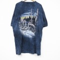 【商品名】 XL★古着 THE MOUNTAIN 半袖 Tシャツ メンズ オオカミ 大きいサイズ ロング丈 コットン クルーネック 紺他 タイダイ【spe】