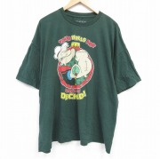 XL★古着 半袖 Tシャツ メンズ アニメ ポパイ 大きいサイズ コットン クルーネック 濃緑