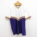 M★古着 ラッセル 半袖 ビンテージ フットボール Tシャツ メンズ 90年代 90s AAYFL 77 メッシュ地 Vネック USA製 白他