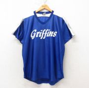 L★古着 半袖 ビンテージ Tシャツ メンズ 00年代 00s グリフィンズ Vネック 青