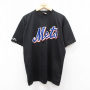 L★古着 マジェスティック 半袖 ビンテージ Tシャツ メンズ 90年代 90s MLB ニューヨークメッツ クルーネック USA製 黒 メジャーリーグ ベースボール 野球