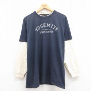 L★古着 長袖 ビンテージ Tシャツ メンズ 90年代 90s ヨセミテ ツートンカラー USA製 紺