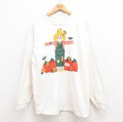 L★古着 長袖 ビンテージ Tシャツ メンズ 90年代 90s カカシ コットン クルーネック USA製 生成り