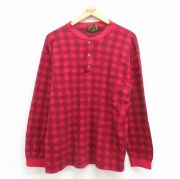 L★古着 エディーバウアー 長袖 ビンテージ Tシャツ メンズ 90年代 90s ヘンリーネック USA製 赤 チェック