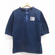 L★古着 半袖 ビンテージ Tシャツ メンズ 90年代 90s FBI ヘンリーネック USA製 紺