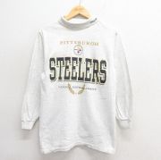 M★古着 長袖 ビンテージ Tシャツ メンズ 90年代 90s NFL ピッツバーグスティーラーズ タートルネック ハイネック USA製 グレー 霜降り アメフト スーパーボウル