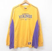 XL★古着 長袖 ビンテージ Tシャツ メンズ 00年代 00s NFL ミネソタバイキングス 刺繍 ツートンカラー Vネック 黄他 アメフト スーパーボウル