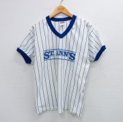 M★古着 エンパイア 半袖 ビンテージ Tシャツ メンズ 80年代 80s セントアンズ 16 Vネック USA製 白他 ストライプ リンガー
